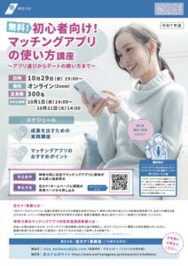 「無料!初心者向け!マッチングアプリの使い方講座〜アプリ選びからデートの誘い方まで〜」概要