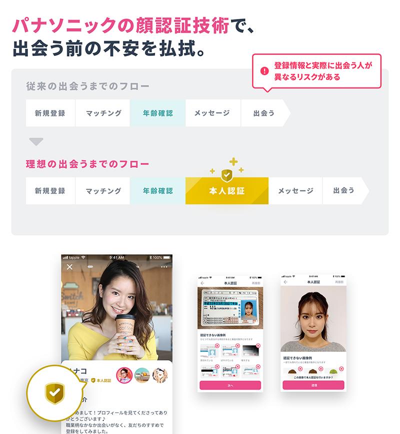 国内最大級のマッチングアプリ「タップル誕生」 本人確認強化を目的として、パナソニックの顔認証技術を導入~ディープラーニング応用によるパナソニック顔認証技術(※1)を適用~